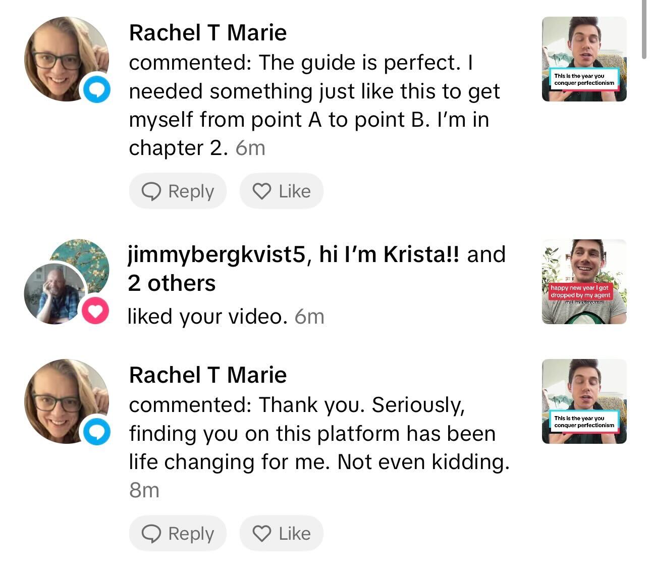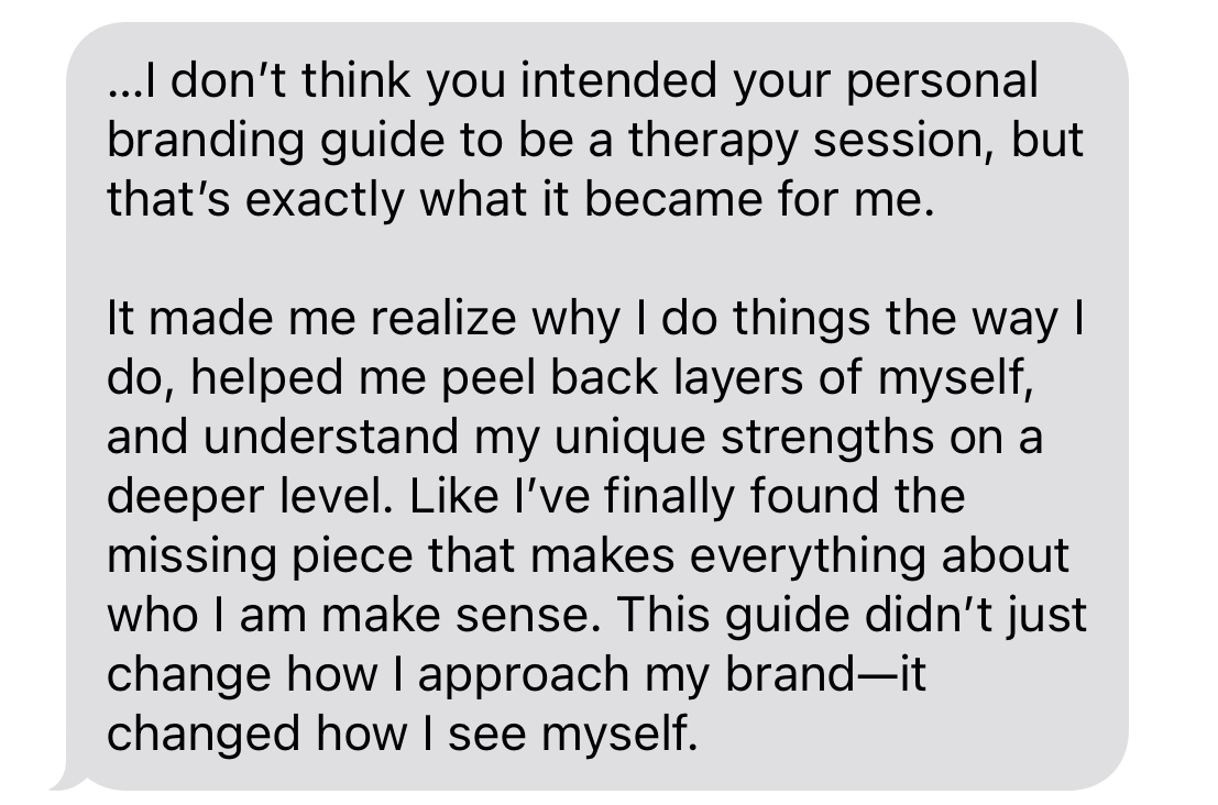 "It's so personalized! You can tell you were so thoughtful about how you wrote it. It's one of the most valuable guides I've received that I've looked into and put into practice."